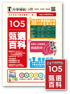 另贈「105 甄選百科序號卡」,除可依學校成績做六次模擬落點觀看個人申請、繁星推薦、四技申請、軍校甄選以及警大考試等五大甄選報表外,還可以在拿到學測成績後做一次正式的免費落點,讓您清楚地知道自己能錄取哪所大學。